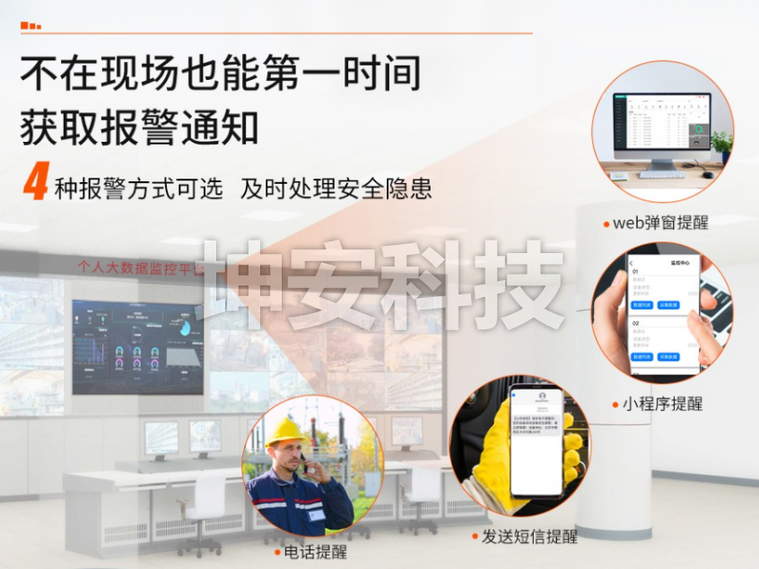 (4) 并能通过声光报警,LED屏幕显示等多种方式发出报警信息,及时告知维护管理责任人。
